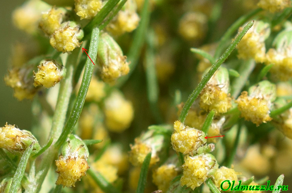 - относительно высокий полукустарник с одревесневающим на значительную высоту стеблем; листья дважды или трижды перисторассечённые, с очень узкими, менее 1 мм шириной, сегментами, конечные - 6-15 мм длиной; корзинки почти шаровидные, 2-3 мм в диаметре, в обильном общем соцветии; полукустарник 40-120 см высотой.