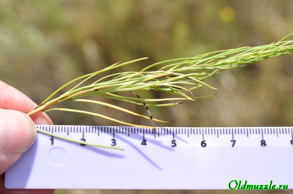 Длина листьев 4 см (3-5 см), ширина листьев 1 мм.
