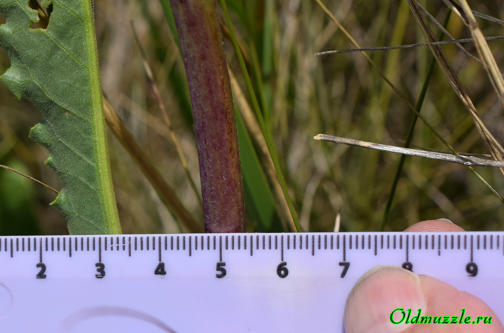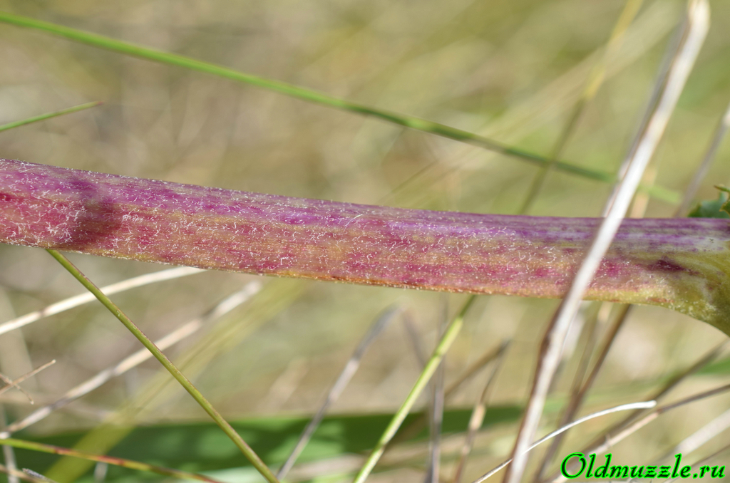Стебель мощный, красноватый. Поверхность опушена разреженными паутинистыми волосками.